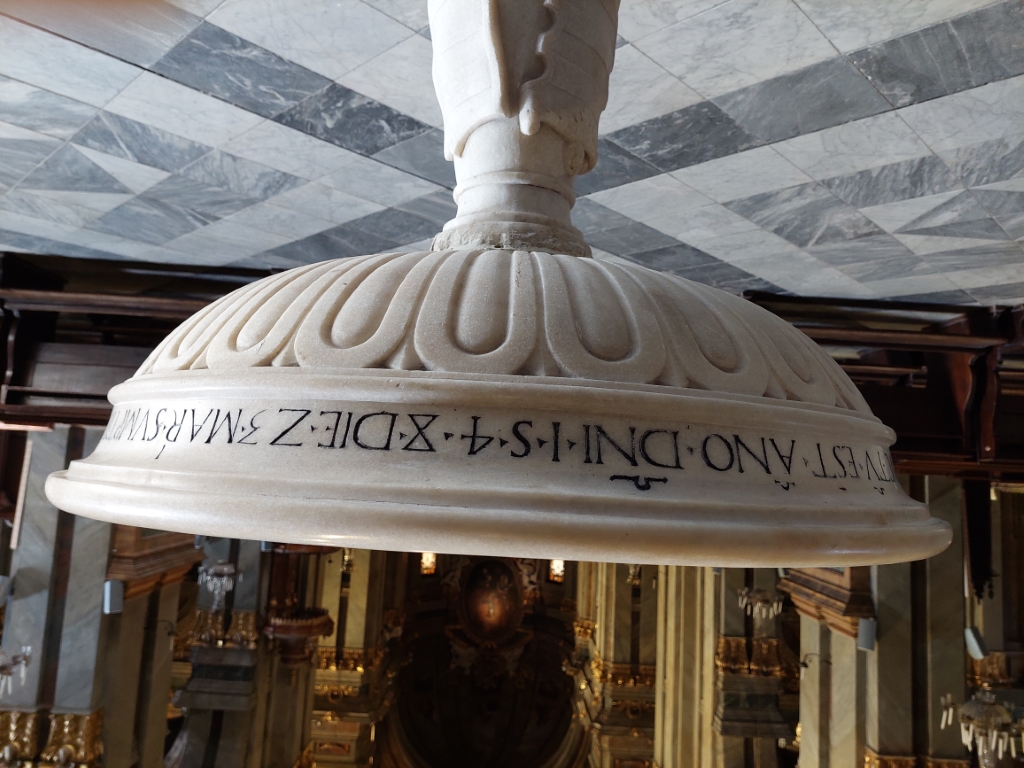 Interno: acquasantiera del 1548. |