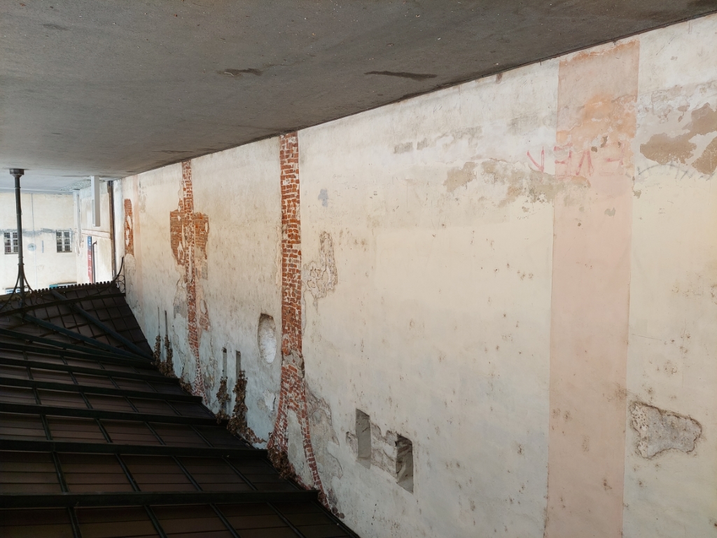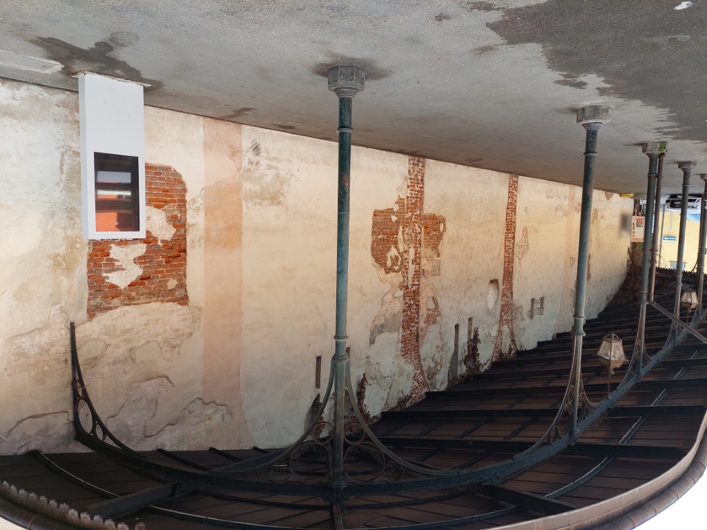 resti della parete meridionale che delimita la tettoia ottocentesca in struttura metallica. |