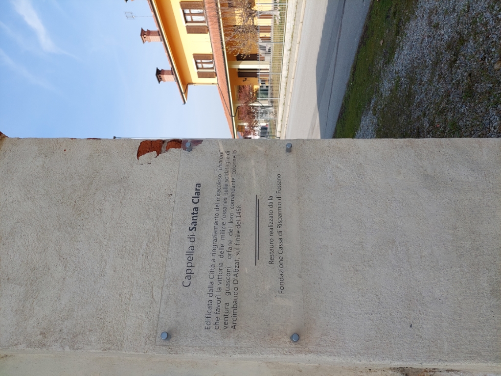 La Cappella si trova a Fossano (CN), nota come Santa Chiara. Periodo prevalente: XV secolo. Livello di interesse: 1 (Interessante). Elementi presenti: architettura, pittura. Da vedere: esterno, interno.