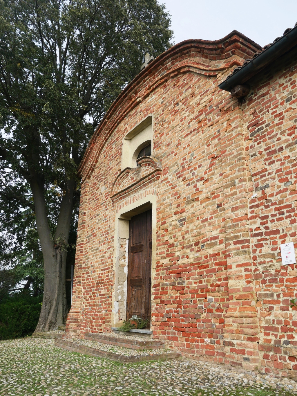 Esterno: muratura di mattoni a vista e abside, forse del 1000, con decorazione ad archetti pensili. |
