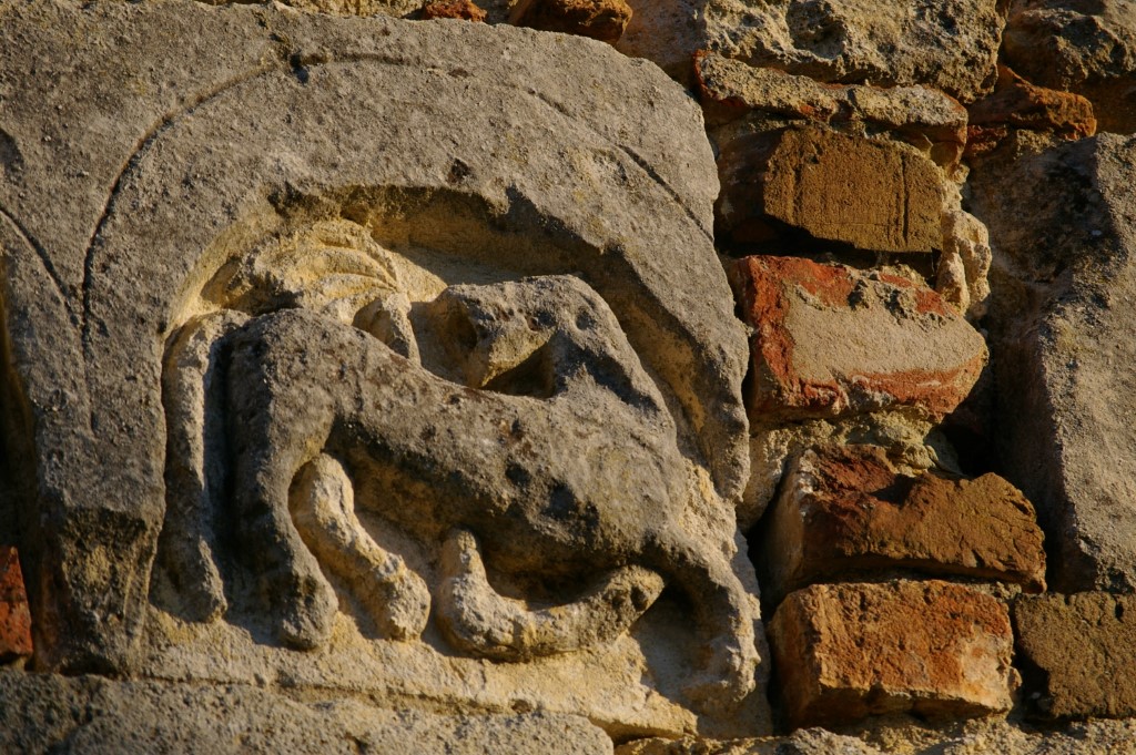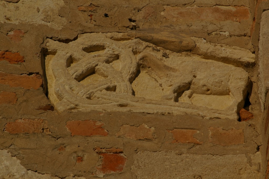 Esterno: presenta elementi decorativi romanici riutilizzati e inseriti nella muratura. |
