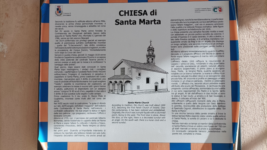 L'Oratorio si trova a Invorio (NO), noto come Santa Marta. Periodo prevalente: XVI secolo. Livello di interesse: 0 (Segnalata). Elementi presenti: pittura. Da vedere: esterno, interno.