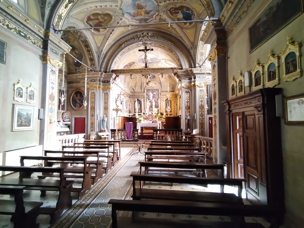 Interno: L’aula interna è di forma rettangolare, tipica delle piccole chiese rurali della Valstrona. |