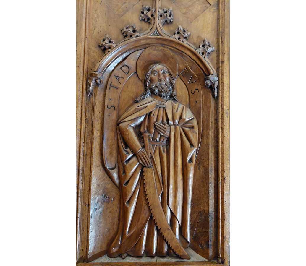 detto anche Giuda Taddeo, fratello di Giacomo, apostolo in Persia, da non confondere con Giuda Iscariota, traditore di Gesù. |