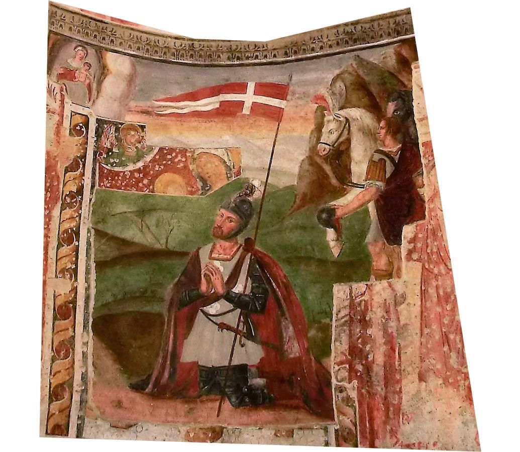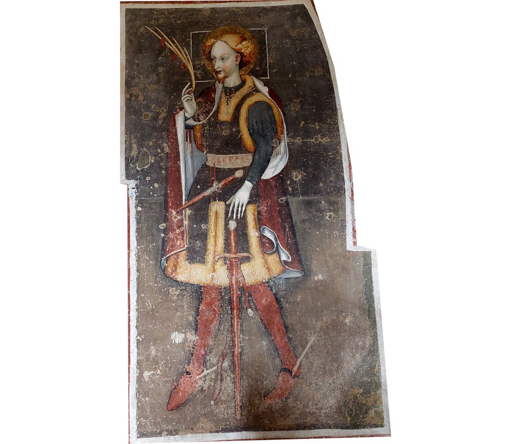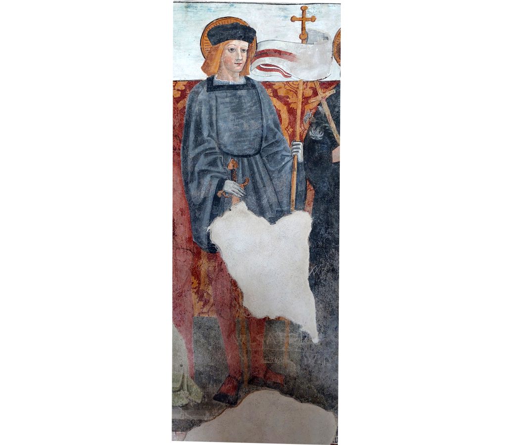 Nell’iconografia piemontese e alpina compare con lo scudo crociato o in compagnia di altri santi militari.